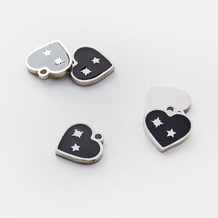 Emaliowana zawieszka ze stali chirurgicznej serce z gwiazdkami czarnymi w kolorze srebrnym 10mm