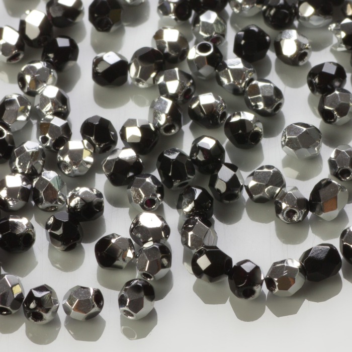 Fire Polish Silver 1/2 Coated Jet (S23980) 3mm