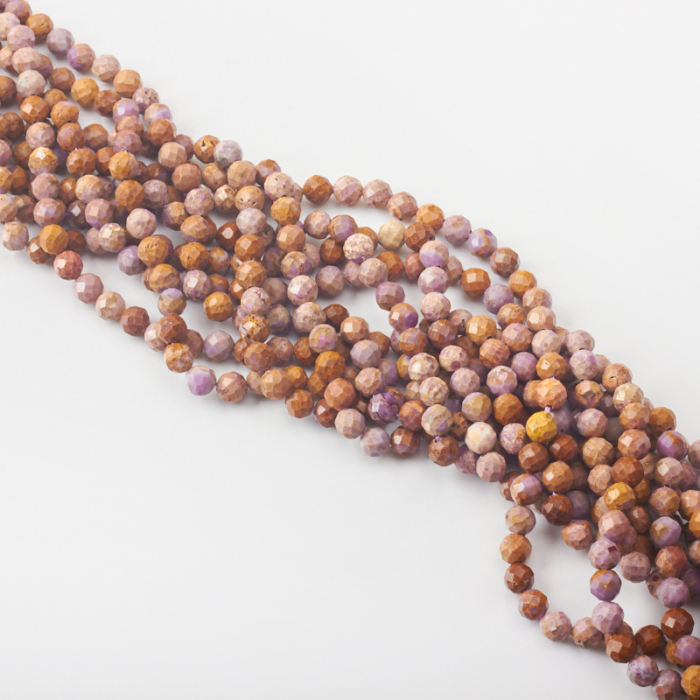 Kamienie naturalne wykonane z fosfosyderytu w kształcie kulki fasetowanej. Bazowy kolor kamieni to fioletowy, który jest przemieszany z kolorem brązowym, pomarańczowym, mlecznym. Kamienie posiadają naturalne wrostki oraz na powierzchni widoczne są ślady fasetowania.*Ponieważ są to kamienie naturalne mogą się nieznacznie różnić od siebie rozmiarem.*Rozmiar podany w nazwie produktu jest wartością orientacyjną. Charakterystyka: