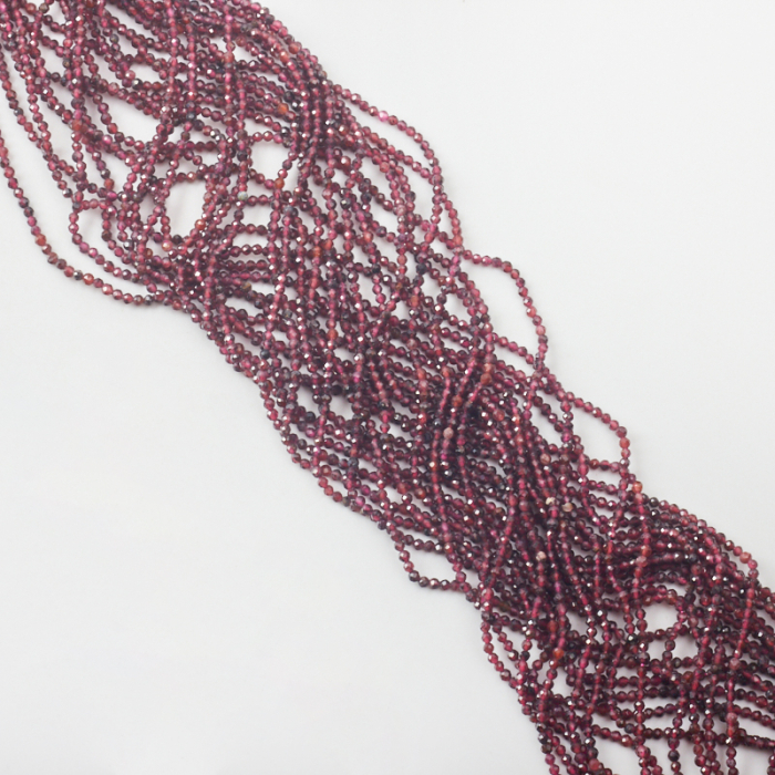 Bardzo drobne kamienie naturalne wykonane z granatu w kształcie kulki fasetowanej. Dominujący kolor to czerwony, wymieszany z fioletowym i różowym. Kamienie posiadają naturalne przebarwienia i wrostki.*Ponieważ są to kamienie naturalne mogą się nieznacznie różnić od siebie rozmiarem.*Rozmiar podany w nazwie produktu jest wartością orientacyjną. Charakterystyka:
