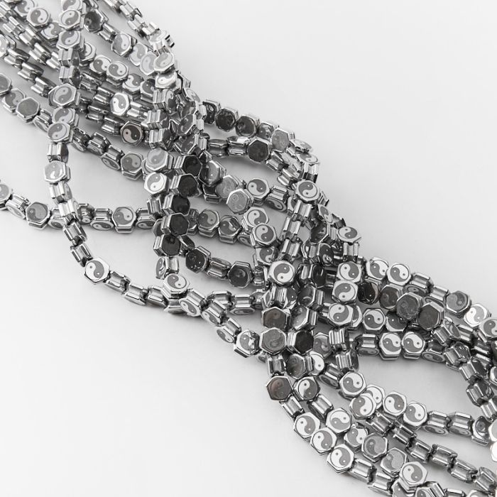 Hematyt koralik do bransoletek shambalowych Yin i yang silver 8,5mm