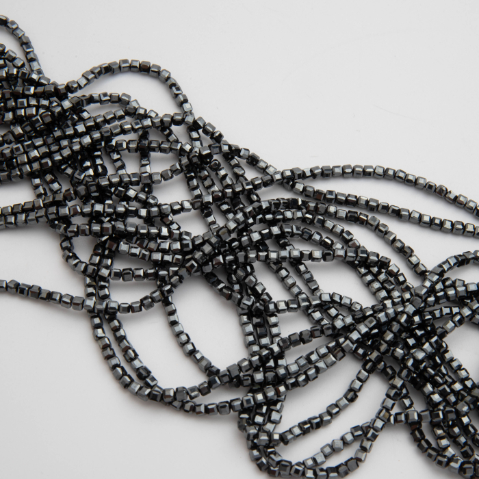 Kamienie naturalne wykonane z hematytu w kształcie kostki fasetowanej. Kamienie są w ciemnoszarym, grafitowym kolorze. Dzięki fasetkom, koraliki pięknie się mienią, migoczą.*Ponieważ są to kamienie naturalne mogą się nieznacznie różnić od siebie rozmiarem i kolorem w zależności od partii produkcyjnej.*Rozmiar podany w nazwie produktu jest wartością orientacyjną. Charakterystyka:
