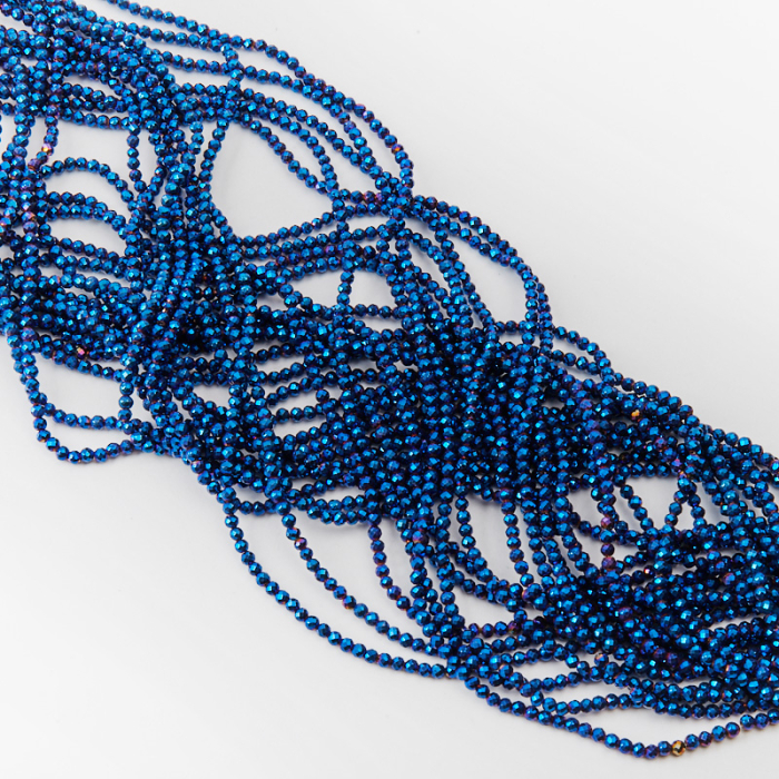 Kamienie naturalne wykonane z hematytu w kształcie kulki fasetowanej w kolorze w niebieskim. W przekroju kulki widoczny jest kolor szary, grafitowy.*Ponieważ są to kamienie naturalne mogą się nieznacznie różnić od siebie rozmiarem.*Rozmiar podany w nazwie produktu jest wartością orientacyjną. Charakterystyka: