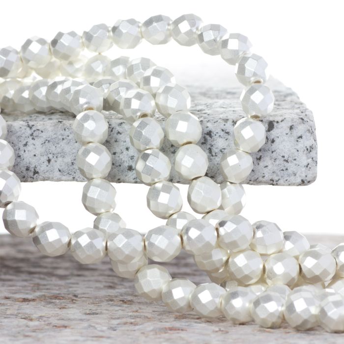Hematyt platerowany kulka fasetowana light silver satine 8mm