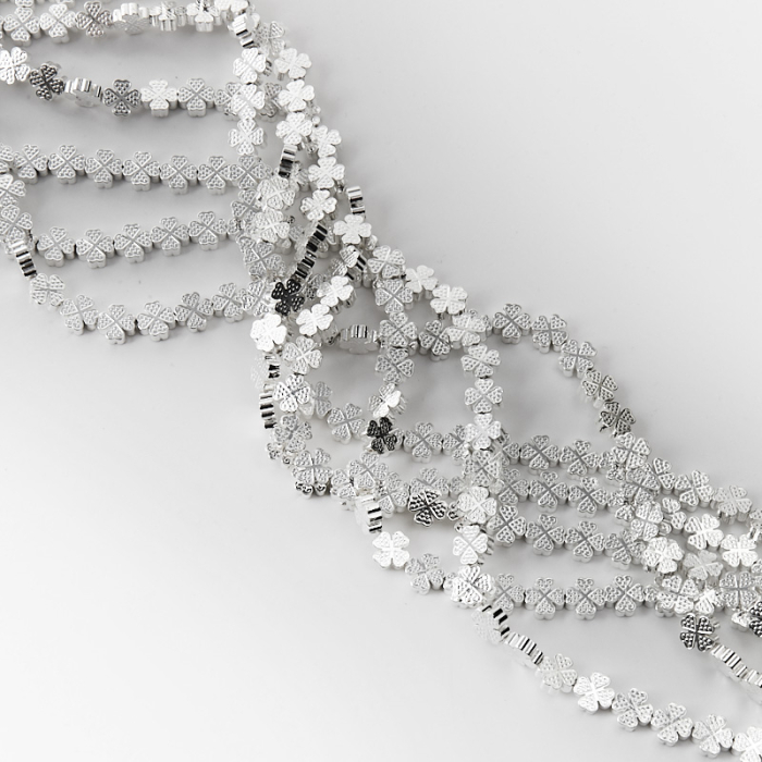 Hematyt przekładka czterolistna koniczyna ozdobna light silver 8mm