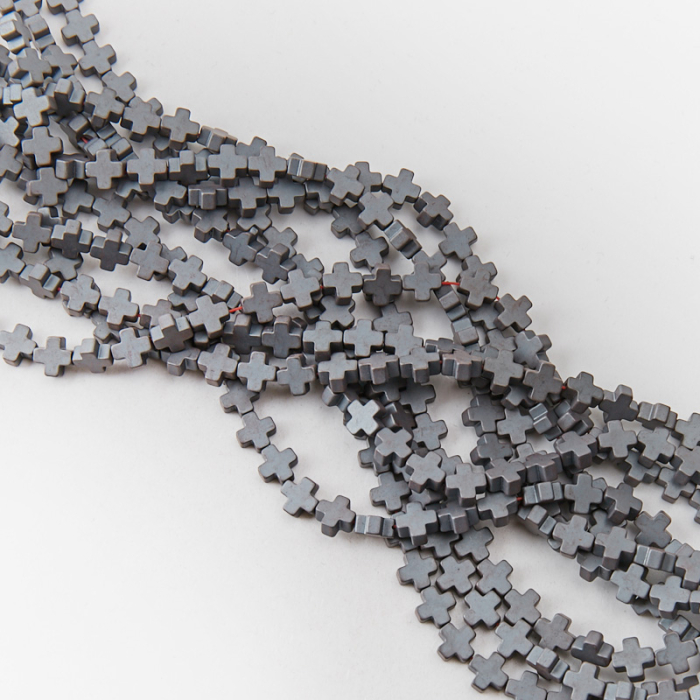 Hematyt przekładka krzyż równoramienny natural mat 6mm