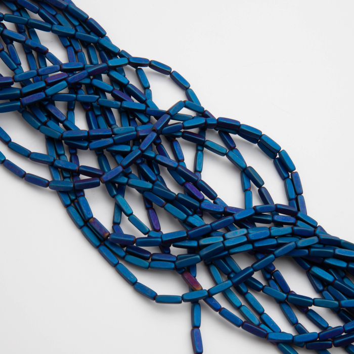 Kamienie naturalne wykonane z hematytu w kształcie zaokrąglonego słupka. Kamienie są matowe w kolorze niebieskim. Niektóre mogą posiadać przebarwienia w kolorze fioletowym, żółtym. W przekroju widoczny kolor szary, grafitowy.*Ponieważ są to kamienie naturalne mogą się nieznacznie różnić od siebie rozmiarem i kolorem w zależności od partii produkcyjnej.*Rozmiar podany w nazwie produktu jest wartością orientacyjną. Charakterystyka: