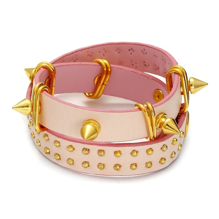 Jasny róż bransoletka ćwieki z przekładkami 2x20cm