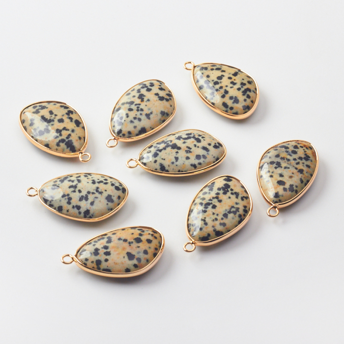 Jaspis dalmatyński zawieszka łezka nieregularna w okuciu 35mm