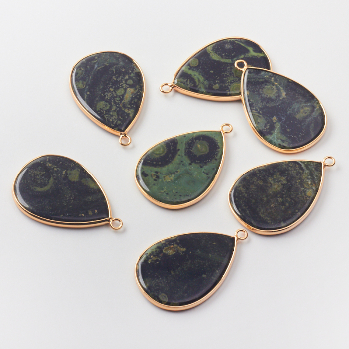 Jaspis kambaba zawieszka płaska łezka w okuciu 40mm
