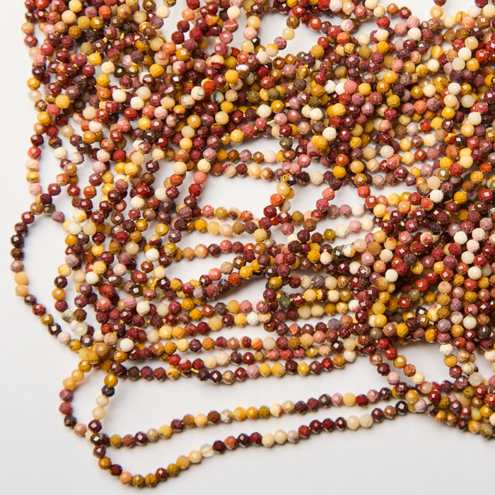 Kamienie naturalne wykonane z jaspisu mokait w kształcie kulki fasetowanej. Kamienie są w kolorze: czerwonym, bordowym, brązowym, pomarańczowym, żółtym, różowym, fioletowym, szarym, czarnym, białym, kremowym. Posiadają naturalnie powstałe wrostki oraz przebarwienia.*Ponieważ są to kamienie naturalne mogą się nieznacznie różnić od siebie rozmiarem.*Rozmiar podany w nazwie produktu jest wartością orientacyjną. Charakterystyka: