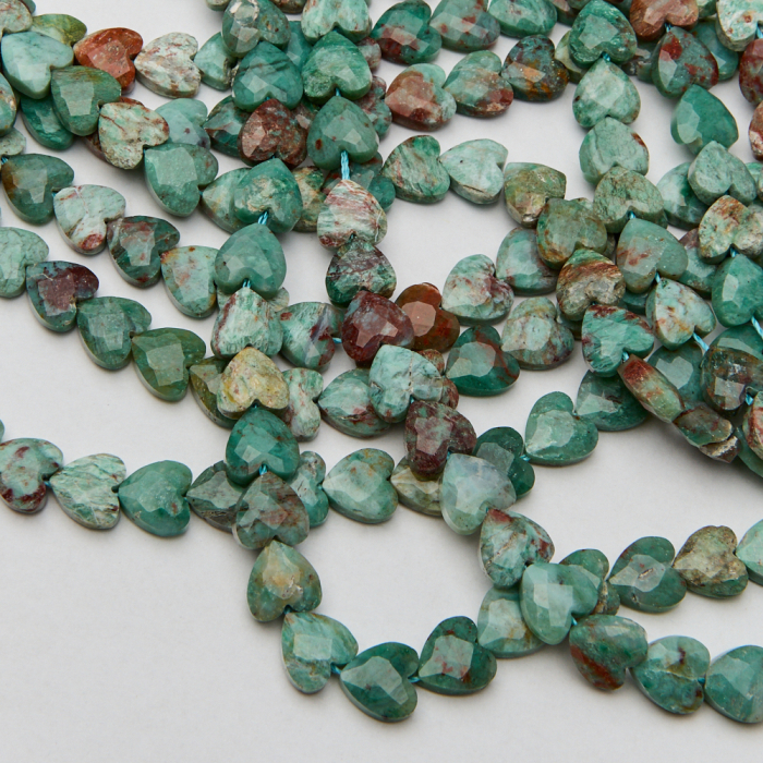 Kamień naturalny – jaspis niebieski, w kształcie fasetowanego serca. Serca są w odcieniach niebieskiego i zielonego z unikalnymi żyłkami oraz przebarwieniami w kolorze brązowym, rudym, białym. Kamienie posiadają naturalnie powstałe wrostki oraz przebarwienia.*Ponieważ są to kamienie naturalne mogą się nieznacznie różnić od siebie rozmiarem i kolorem w zależności od partii produkcyjnej.*Rozmiar podany w nazwie produktu jest wartością orientacyjną. Charakterystyka: