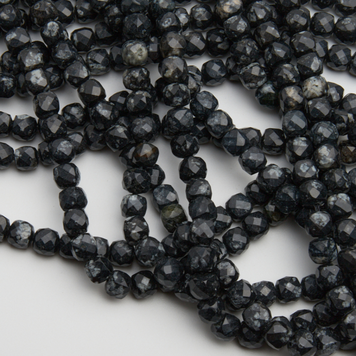 Kamienie naturalne wykonane z jaspisu śnieżnego w kształcie kostki fasetowanej. Dominujący kolor to czarny z licznymi białymi, szarymi wrostkami. Kamienie posiadają naturalnie powstałe przebarwienia.*Ponieważ są to kamienie naturalne mogą się nieznacznie różnić od siebie rozmiarem i kolorem w zależności od partii produkcyjnej.*Rozmiar podany w nazwie produktu jest wartością orientacyjną. Charakterystyka: