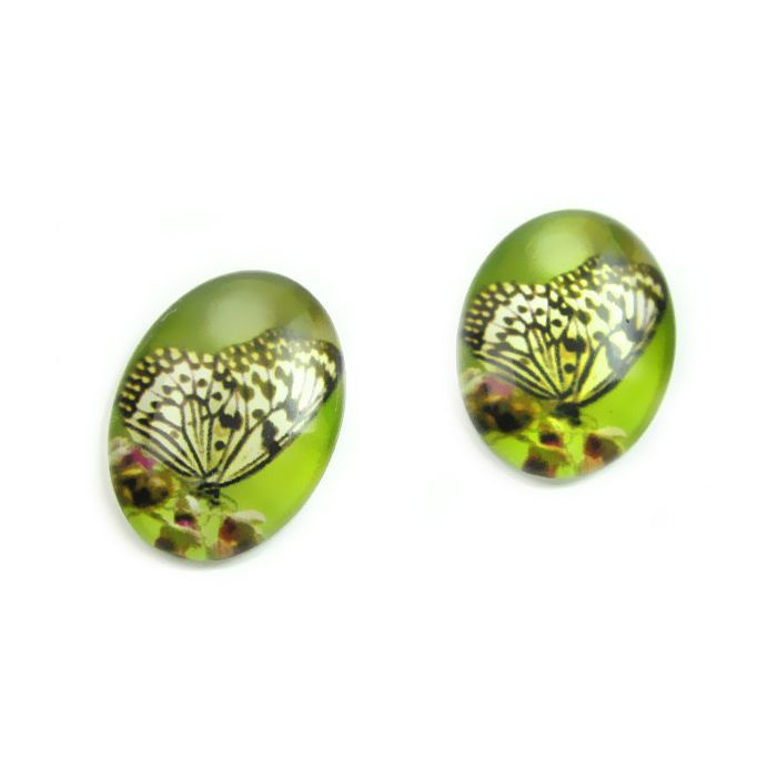 Kaboszon szklany owalny dostojny motyl 13x18mm