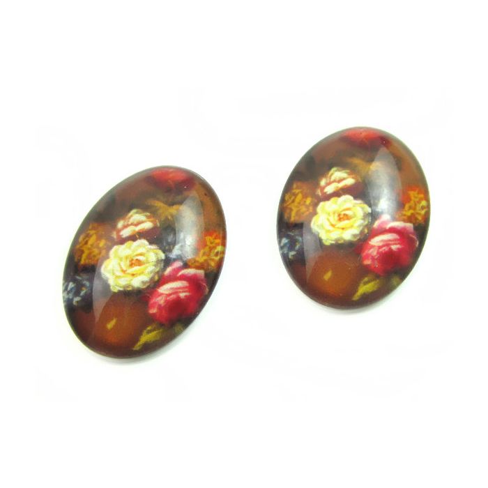 Kaboszon szklany owalny kolorowe kwiaty 18x25mm