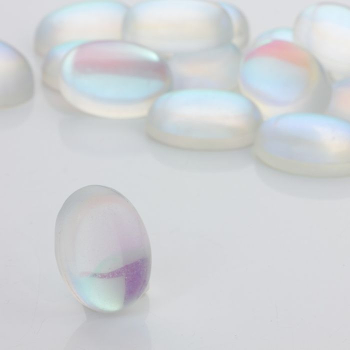 Kaboszon ze szkła kryształowego owal opalizujący biały 28x18mm