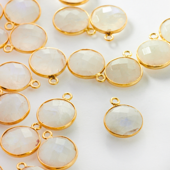 Kamień księżycowy krążek fasetowany w okuciu AG925 12mm