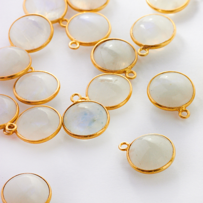 Kamień księżycowy krążek gładki w okuciu AG925 12mm