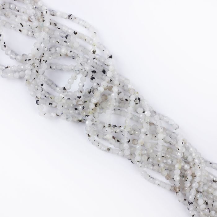 Kamień księżycowy z czarnym turmalinem kulka fasetowana 3mm