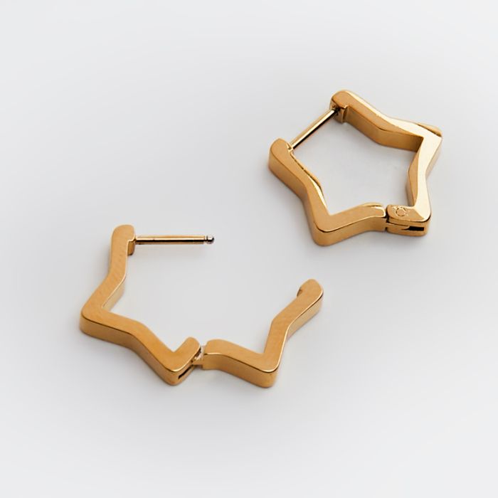 Kolczyki kajdanki ze stali chirurgicznej gwiazdki w kolorze złotym 18mm