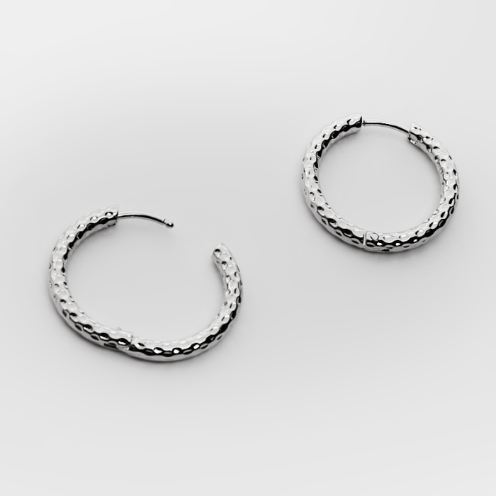 Kolczyki kajdanki ze stali chirurgicznej koła karbowane w kolorze srebrnym 21mm
