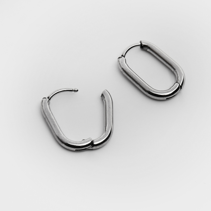 Kolczyki kajdanki ze stali chirurgicznej owale okrągłe w kolorze srebrnym 15,5x10,5mm