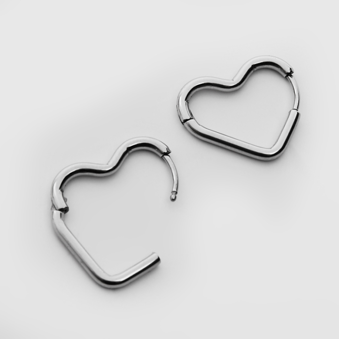 Kolczyki kajdanki ze stali chirurgicznej serca okrągłe w kolorze srebrnym 10x17,5mm