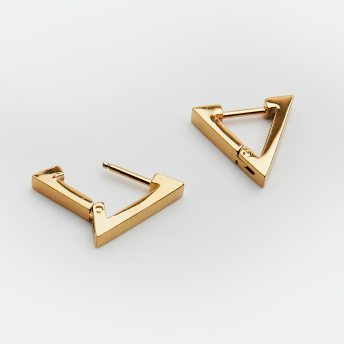 Kolczyki kajdanki ze stali chirurgicznej trójkąty w kolorze złotym 13mm