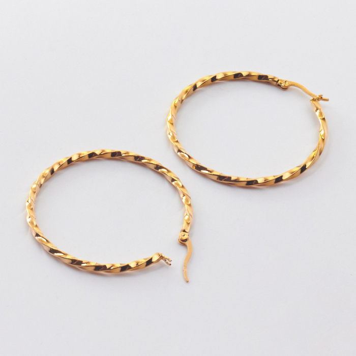 Kolczyki koła skręcane ze stali chirurgicznej w kolorze złotym 45mmTo estetyczny element biżuteryjny ze stali szlachetnej, chętnie wybierany do nowoczesnych projektów. Stal szlachetna dobrze sprawdza się w biżuterii noszonej na co dzień, ponieważ łączy trwałość z estetycznym wykończeniem.Element do kolczyków wykonany ze stali szlachetnej to praktyczna baza do tworzenia wygodnej i trwałej biżuterii. Dzięki prostej formie można go wykorzystać zarówno w minimalistycznych projektach, jak i w bardziej ozdobnych kompozycjach z kamieniami, perłami lub zawieszkami.Rozmiar