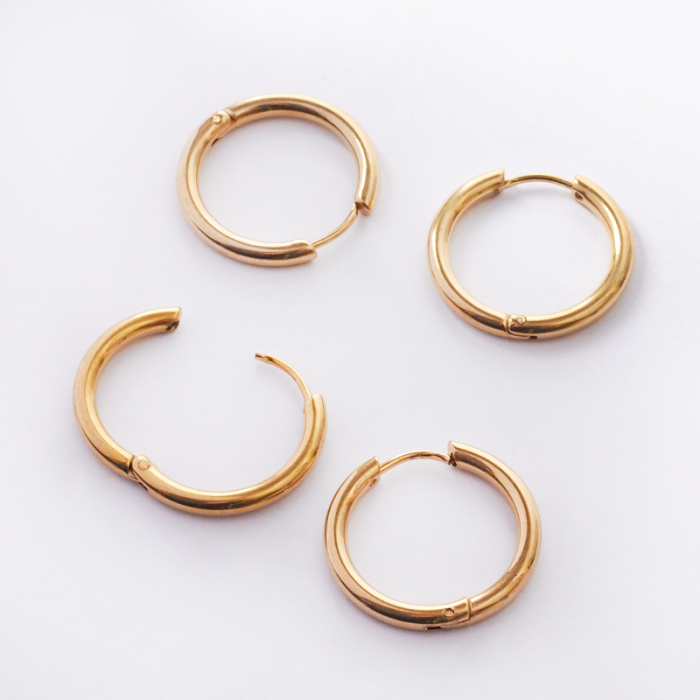 Kolczyki koła zapinane ze stali szlachetnej w kolorze złotym 19mmTo starannie wykonany element, który łączy funkcjonalność z estetycznym wyglądem. Stal szlachetna dobrze sprawdza się w biżuterii noszonej na co dzień, ponieważ łączy trwałość z estetycznym wykończeniem.W tym produkcie zastosowano stal szlachetną