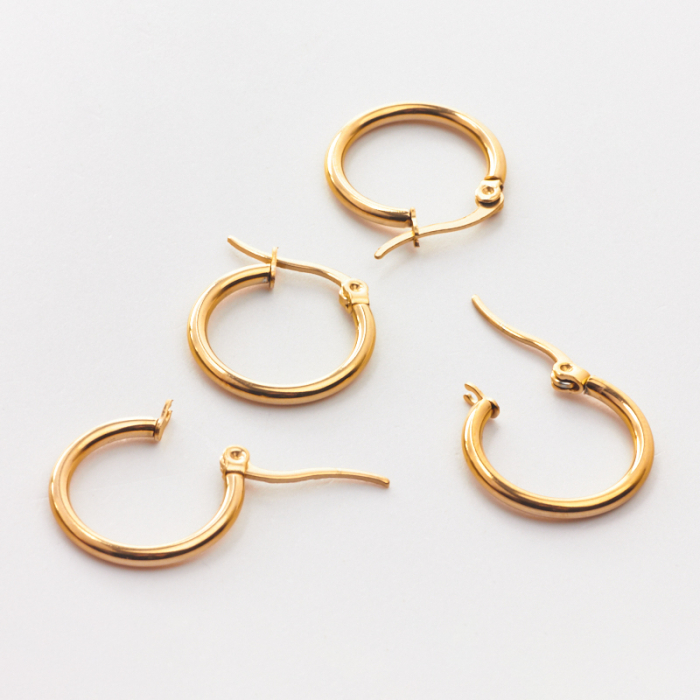 Kolczyki koła ze stali chirurgicznej w kolorze złotym 18mmTo dopracowany produkt ze stali szlachetnej, który łączy praktyczność z estetycznym wyglądem. To materiał chętnie wybierany do biżuterii handmade ze względu na trwałość, estetykę i wygodę użytkowania.Element do kolczyków wykonany ze stali szlachetnej to praktyczna baza do tworzenia wygodnej i trwałej biżuterii. Dzięki prostej formie można go wykorzystać zarówno w minimalistycznych projektach, jak i w bardziej ozdobnych kompozycjach z kamieniami, perłami lub zawieszkami.Rozmiar