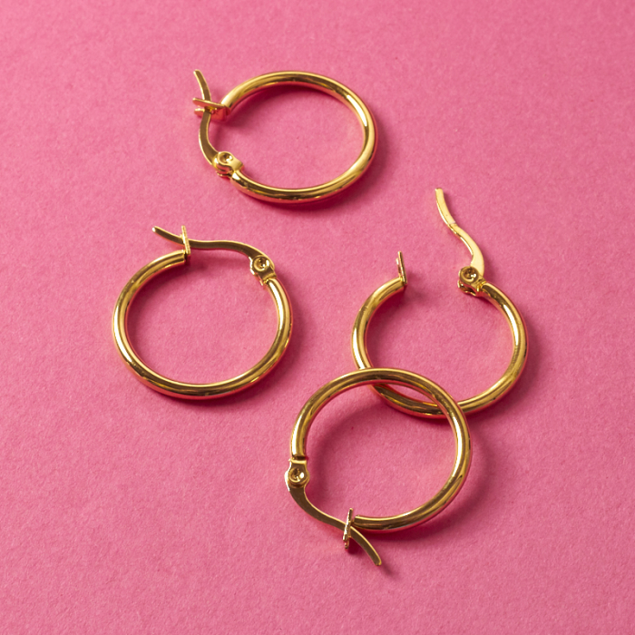 Kolczyki koła ze stali chirurgicznej w kolorze złotym 19mmTo estetyczny element biżuteryjny ze stali chirurgicznej 316L, chętnie wybierany do nowoczesnych projektów. Stal chirurgiczna 316L dobrze sprawdza się w biżuterii noszonej na co dzień, ponieważ łączy trwałość z estetycznym wykończeniem.Element do kolczyków wykonany ze stali chirurgicznej 316L to praktyczna baza do tworzenia wygodnej i trwałej biżuterii. Dzięki prostej formie można go wykorzystać zarówno w minimalistycznych projektach, jak i w bardziej ozdobnych kompozycjach z kamieniami, perłami lub zawieszkami.Rozmiar