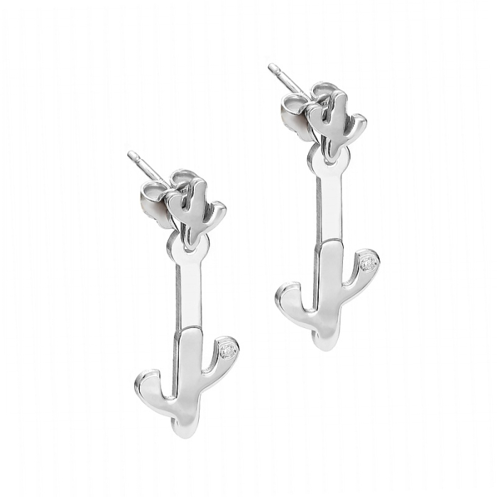 Kolczyki rodowane kaktus z cyrkonią AG925