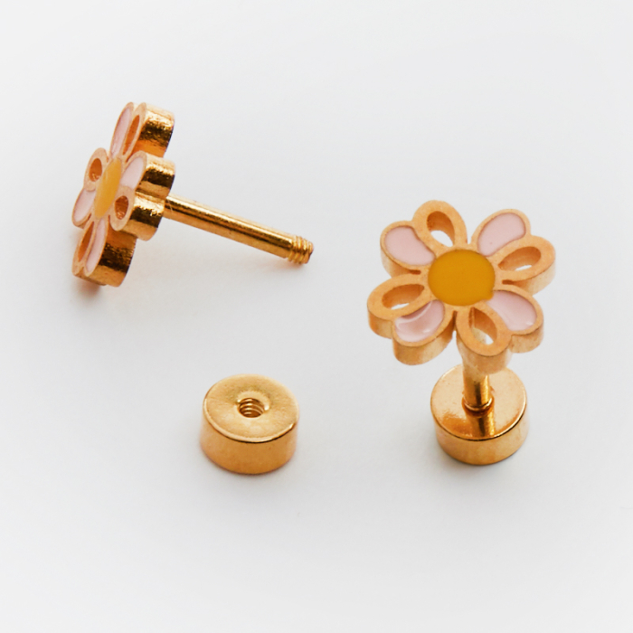 Kolczyki sztyfty dziecięce ze stali szlachetnej kwiatek w kolorze złotym 7,5mmTo trwały element biżuterii lub półfabrykat jubilerski, który dobrze sprawdza się w codziennych realizacjach. Stal szlachetna dobrze sprawdza się w biżuterii noszonej na co dzień, ponieważ łączy trwałość z estetycznym wykończeniem.Element do kolczyków wykonany ze stali szlachetnej to praktyczna baza do tworzenia wygodnej i trwałej biżuterii. Dzięki prostej formie można go wykorzystać zarówno w minimalistycznych projektach, jak i w bardziej ozdobnych kompozycjach z kamieniami, perłami lub zawieszkami.Rozmiar