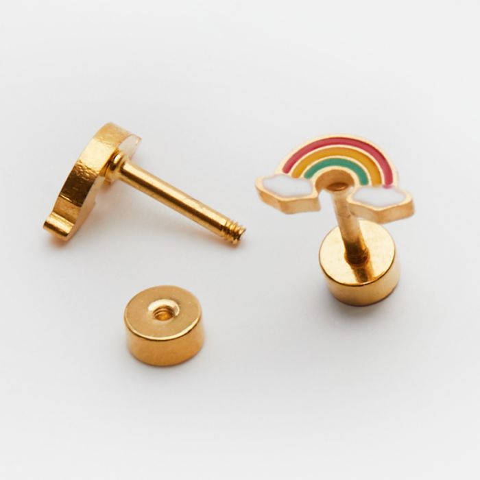 Kolczyki sztyfty dziecięce ze stali chirurgicznej tęcza w kolorze złotym 5mm