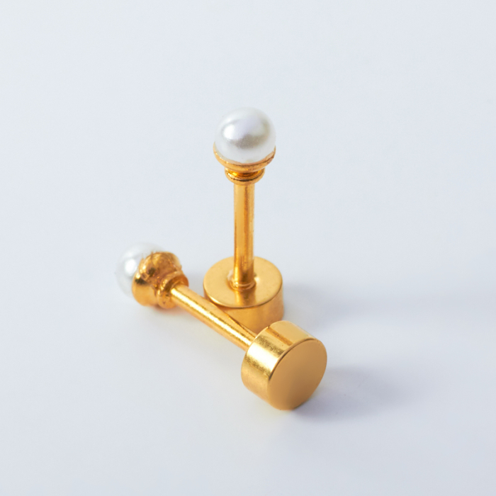 Kolczyki z perłami ze stali chirurgicznej w kolorze złotym 3mm