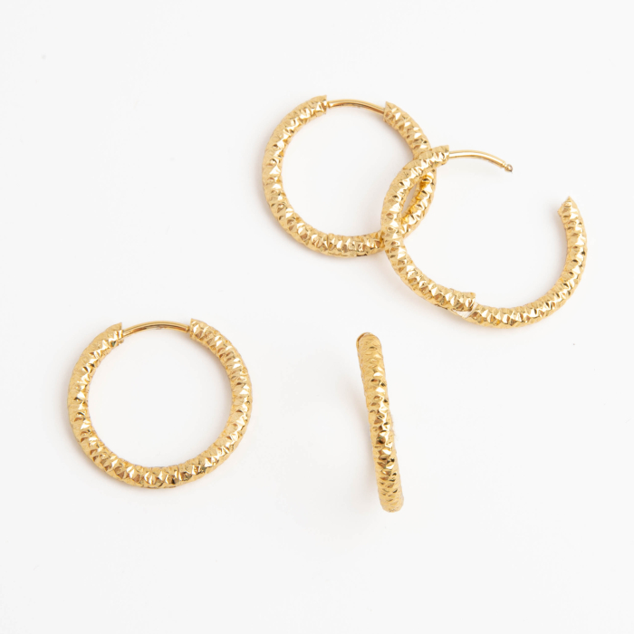 Kolczyki ze stali chirurgiczej diamentowane koła w kolorze złotym 21mmTo trwały element biżuterii lub półfabrykat jubilerski, który dobrze sprawdza się w codziennych realizacjach. Stal szlachetna jest ceniona za odporność na korozję i estetyczny wygląd w codziennym użytkowaniu.Element do kolczyków wykonany ze stali szlachetnej to praktyczna baza do tworzenia wygodnej i trwałej biżuterii. Dzięki prostej formie można go wykorzystać zarówno w minimalistycznych projektach, jak i w bardziej ozdobnych kompozycjach z kamieniami, perłami lub zawieszkami.Rozmiar