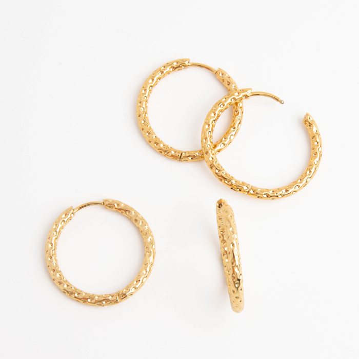 Kolczyki ze stali chirurgiczej diamentowane koła w kolorze złotym 25mmTo dopracowany produkt ze stali szlachetnej, który łączy praktyczność z estetycznym wyglądem. To materiał chętnie wybierany do biżuterii handmade ze względu na trwałość, estetykę i wygodę użytkowania.Element do kolczyków wykonany ze stali szlachetnej to praktyczna baza do tworzenia wygodnej i trwałej biżuterii. Dzięki prostej formie można go wykorzystać zarówno w minimalistycznych projektach, jak i w bardziej ozdobnych kompozycjach z kamieniami, perłami lub zawieszkami.Rozmiar