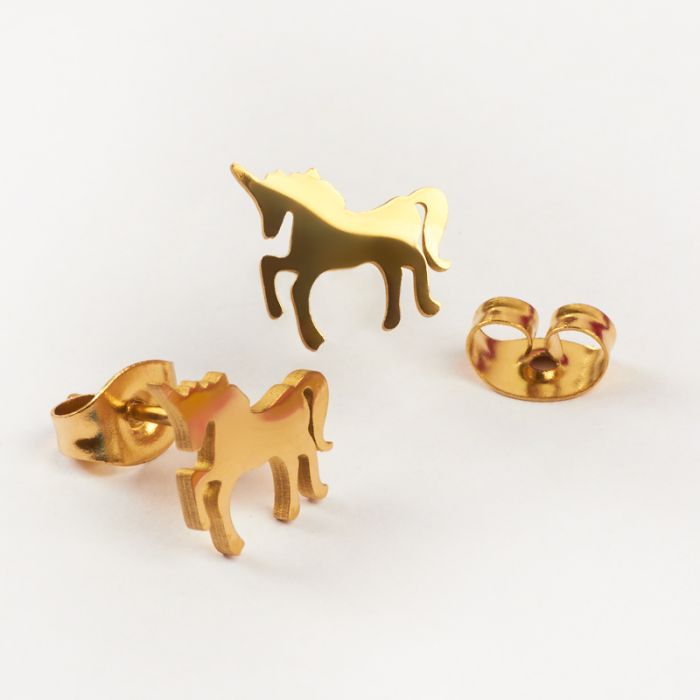 Kolczyki ze stali chirurgicznej jednorożec w kolorze złotym 9,5x9mm