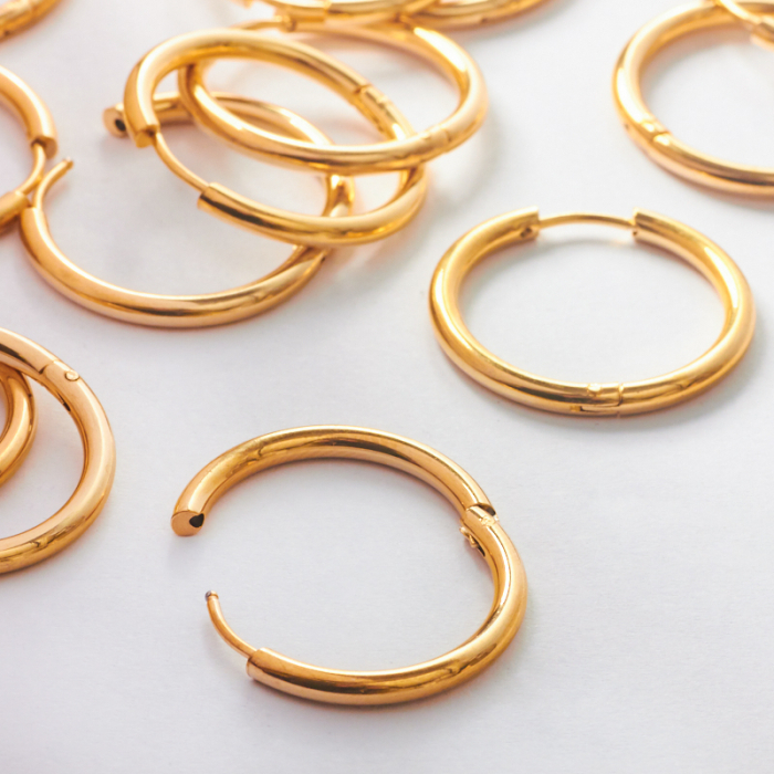 Kolczyki ze stali chirurgicznej koła w kolorze złotym 25mmTo estetyczny element biżuteryjny ze stali szlachetnej, chętnie wybierany do nowoczesnych projektów. W biżuterii handmade stal szlachetna jest ceniona za dobry wygląd, odporność na korozję i wygodę codziennego użytkowania.Element do kolczyków wykonany ze stali szlachetnej to praktyczna baza do tworzenia wygodnej i trwałej biżuterii. Dzięki prostej formie można go wykorzystać zarówno w minimalistycznych projektach, jak i w bardziej ozdobnych kompozycjach z kamieniami, perłami lub zawieszkami.Rozmiar