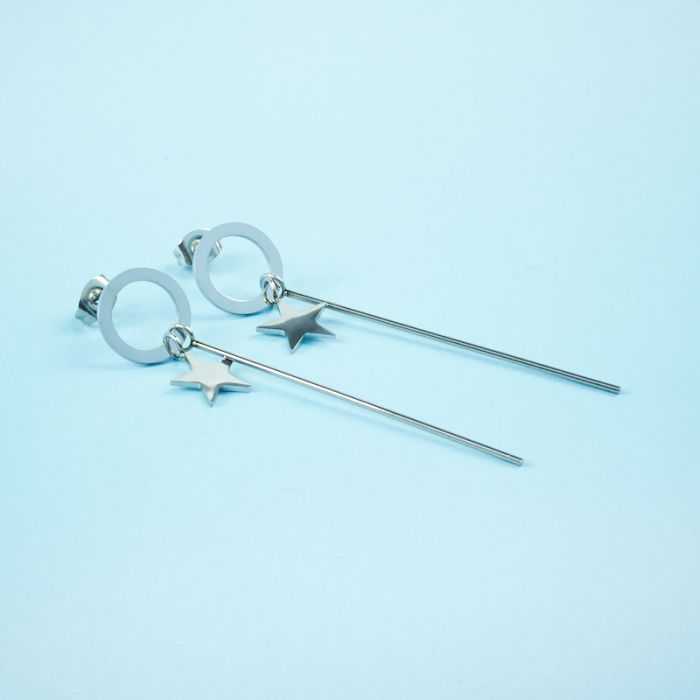 Kolczyki ze stali chirurgicznej kółko z patyczkiem i gwiazdką w kolorze srebrnym 6cm