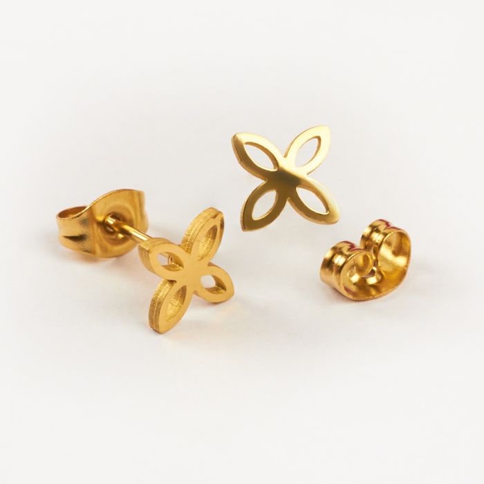 Kolczyki ze stali chirurgicznej koniczyna marokańska w kolorze złotym 8,5x8,5mm