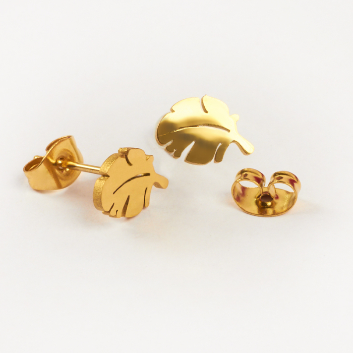 Kolczyki ze stali chirurgicznej liść monstery w kolorze złotym 6x9mmTo dopracowany produkt ze stali szlachetnej, który łączy praktyczność z estetycznym wyglądem. Stal szlachetna jest ceniona za odporność na korozję i estetyczny wygląd w codziennym użytkowaniu.Element do kolczyków wykonany ze stali szlachetnej to praktyczna baza do tworzenia wygodnej i trwałej biżuterii. Dzięki prostej formie można go wykorzystać zarówno w minimalistycznych projektach, jak i w bardziej ozdobnych kompozycjach z kamieniami, perłami lub zawieszkami.Rozmiar