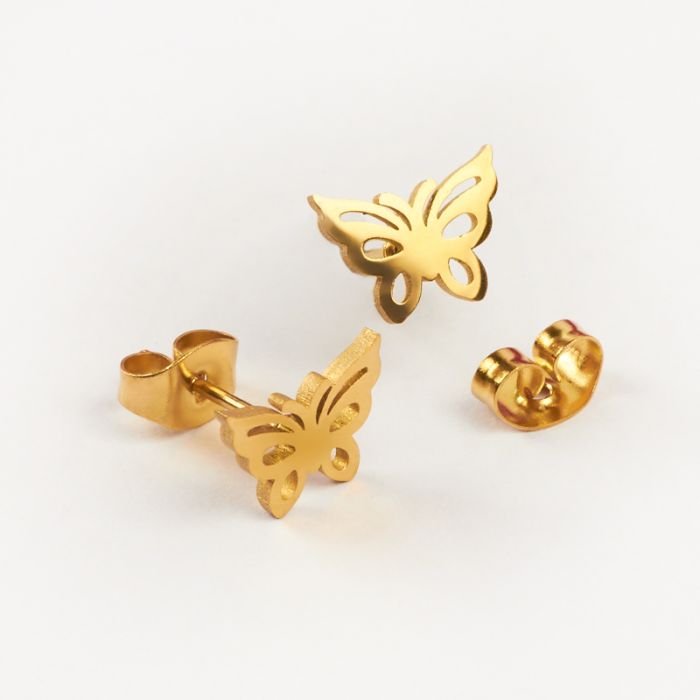 Kolczyki ze stali chirurgicznej motylek w kolorze złotym 6,5x8,5mm