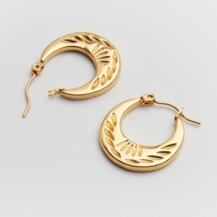 Kolczyki ze stali chirurgicznej ozdobne kółko z listkami laurowymi w kolorze złotym 21mm PVD