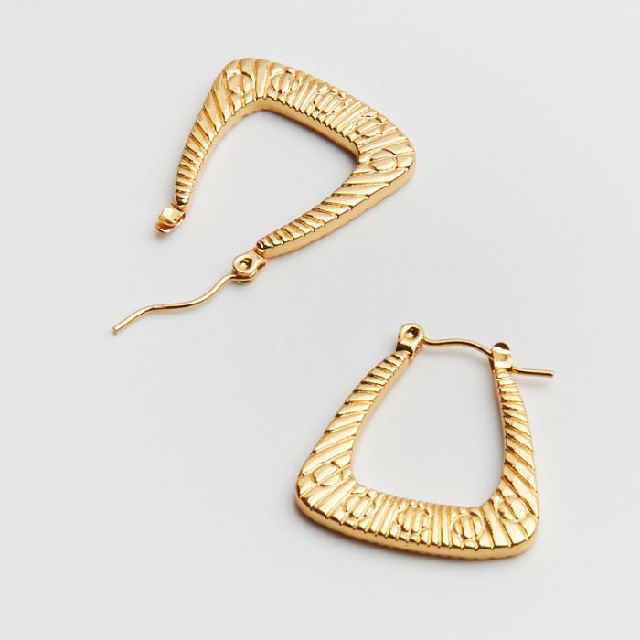 Kolczyki ze stali chirurgicznej ozdobny trapez w linie i kółka w kolorze złotym 25,5mm PVD