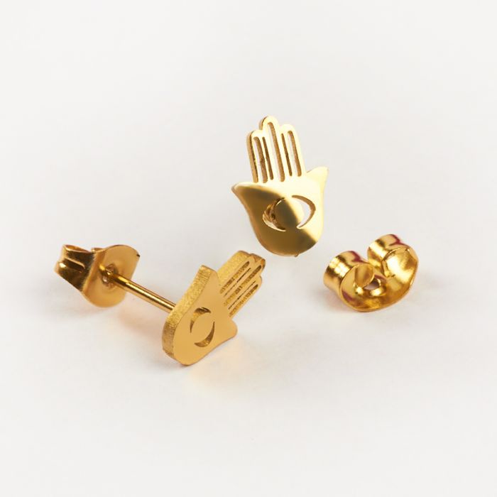 Kolczyki ze stali chirurgicznej ręka fatimy w kolorze złotym 6,5x9,5mm