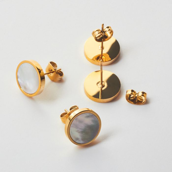 Kolczyki ze stali chirurgicznej z masą perłową kółko w kolorze złotym 11,5mm