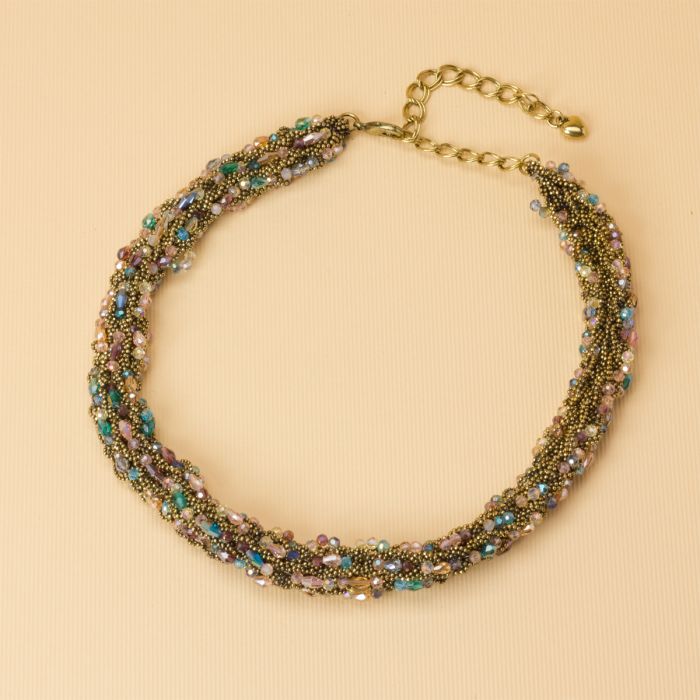 Kolia z drobnych łańcuszków z kryształkami 50cm