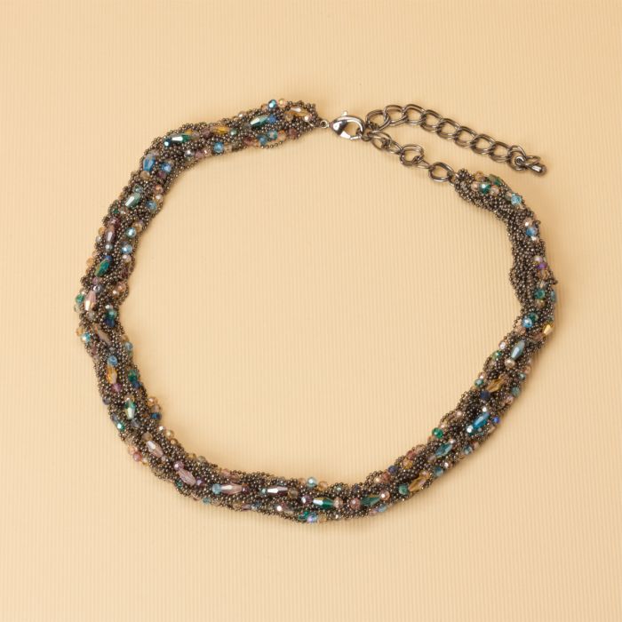 Kolia z drobnych łańcuszków z kryształkami 50cm